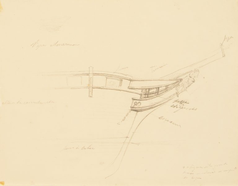MVM0210 Baixar Área de Identificação DenominaçãoDesenhoClassificação02 Artes Visuais/Cinematográfica > 02.2 Desenho Área de Informações TítuloEstudo de embarcaçãoAutoriaVictor Meirelles de LimaPaís de produçãoParaguai Área de Características Físicas Material/TécnicaGrafite sobre papelDimensõesObra: 22,9 x 28,5 cmInscrições e Marcas“2538/73/2” e “8416” (v) [ilegível] (vcd)Estado de conservaçãoBom Área de Procedência e Histórico Exposições no MVM Item anterior“Niterói” [estudo de proa de embarcação] Próximo item“Galeria de Tipos Brasileiros: O Príncipe”